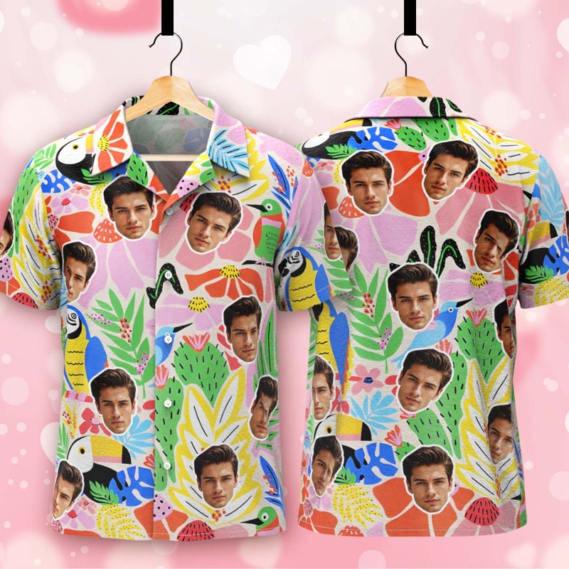 Buntes Tropisches Hawaiihemd Mit Individuellem Gesicht, Personalisiertes Aloha-hemd, Sommer-strandparty-outfit Für Männer