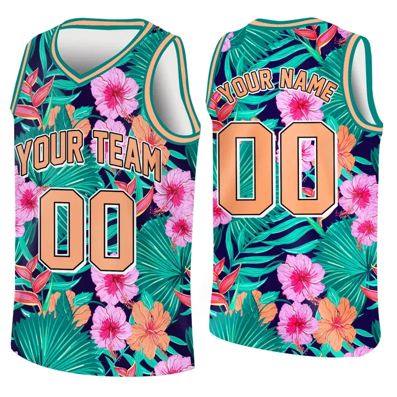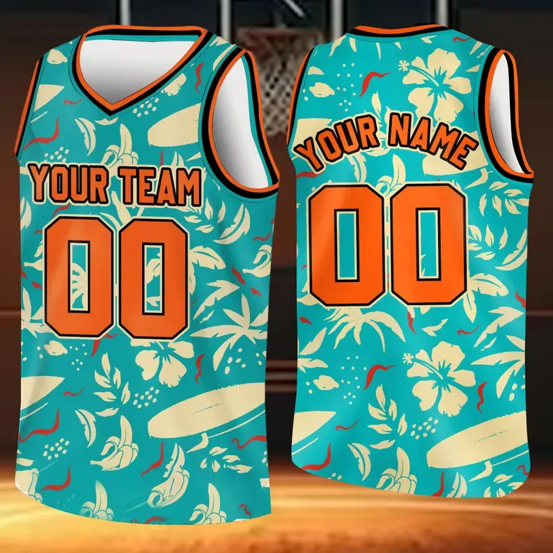 Benutzerdefiniertes 3d-muster, Tropische V-form, Hawaii-blätter, Basketball-trikot Mit Namen Und Nummer