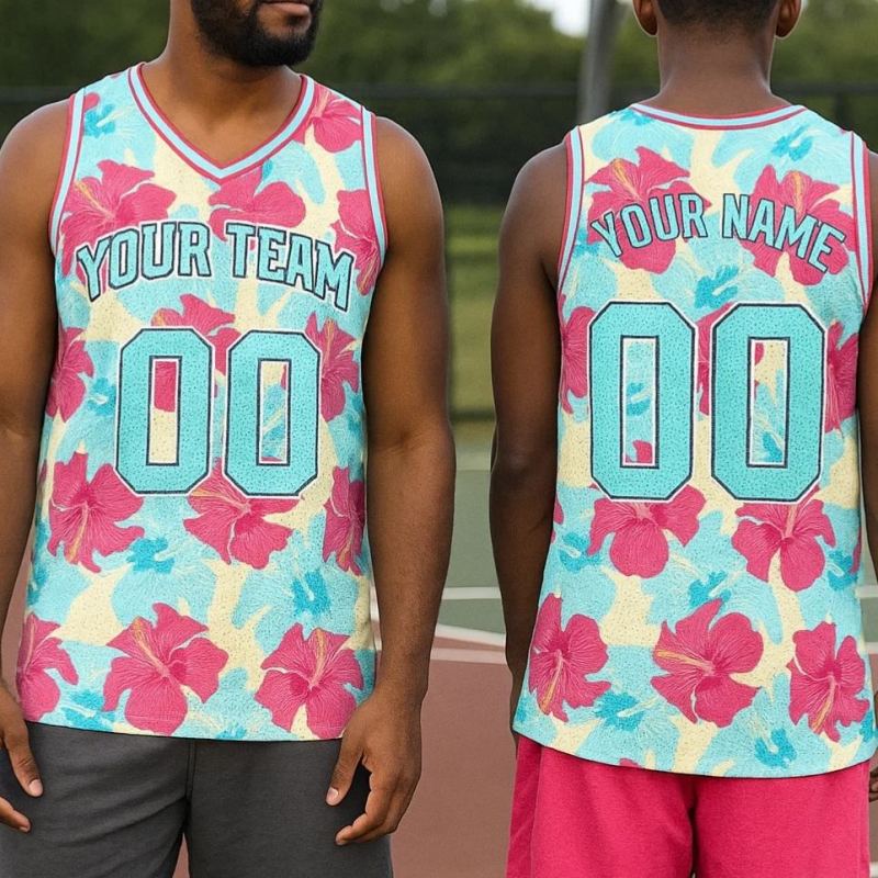 Startseite / Benutzerdefiniertes 3d-muster, Tropische V-form, Hawaii-blätter, Basketball-trikot Mit Namen Und Nummer