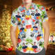 Dieses Hawaiihemd verfügt über einen Aufdruck, einen Knopfverschluss und kurze Ärmel.