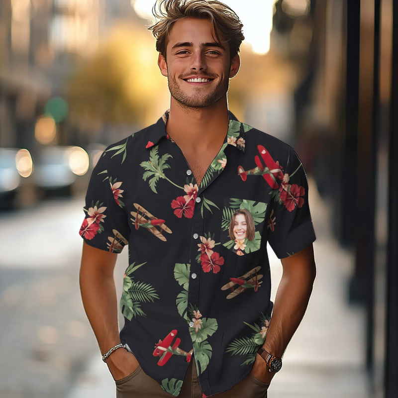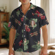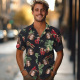 Dieses Hawaiihemd verfügt über einen Aufdruck, einen Knopfverschluss und kurze Ärmel.