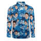 Custom Face Blue Flowers and Leaves All Over Print Long Sleeve Shirt
