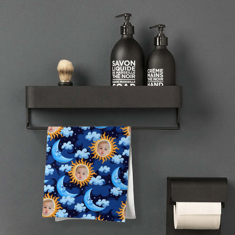 Startseite / Benutzerdefiniertes Gesicht Blue Moon Strandtuch, Personalisiertes Foto Strandtuch, Lustiges Geschenk