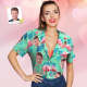 Startseite / Hawaiihemd mit Gesicht Hawaiihemd Mit Individuellem Gesicht, Flamingo-tropenhemd Für Frauen, Komplett Bedruckt Mit Grün Und Palmblättern