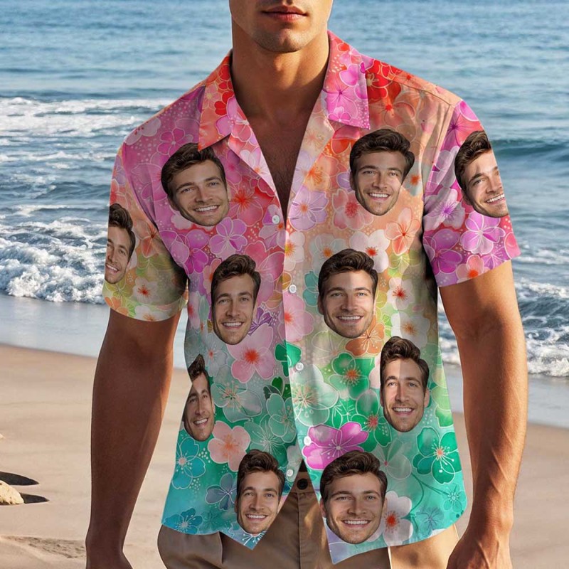 Startseite / Hawaiihemd Mit Individuellem Foto, Strandhemd Mit 3d-effekt Und Blumenmuster