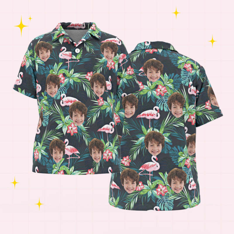 Startseite / Benutzerdefiniertes Gesicht Kinder-poloshirts, Personalisiertes Foto-shirt Im Hawaiianischen Stil, Flamingo-blume