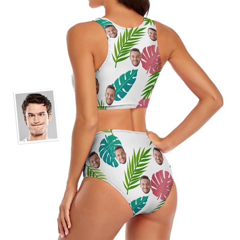 Benutzerdefinierte Gesicht Frauen Blätter zweiteilige Badeanzug personalisierte Geschenke für sie