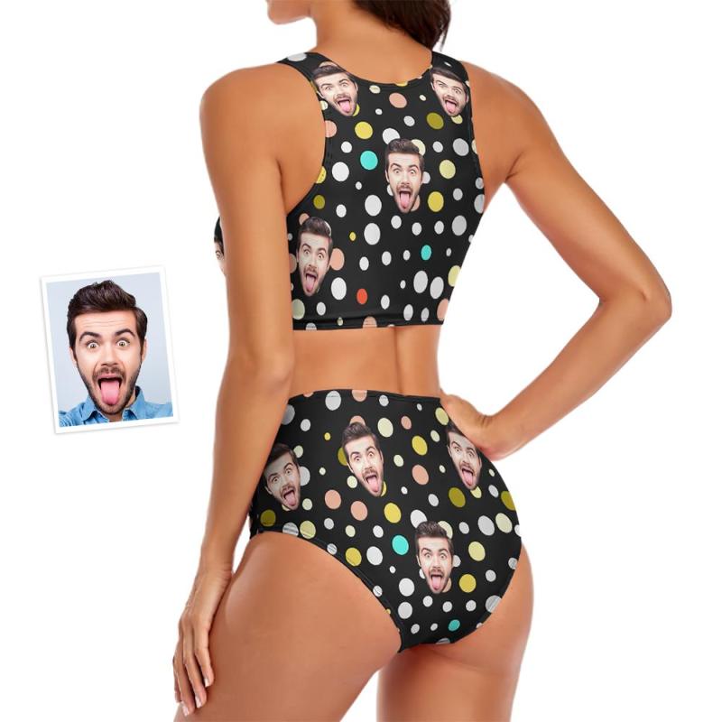 Startseite / Benutzerdefinierte Gesicht Frauen Polka Dots zweiteiligen Badeanzug Sexy Urlaub Geschenke