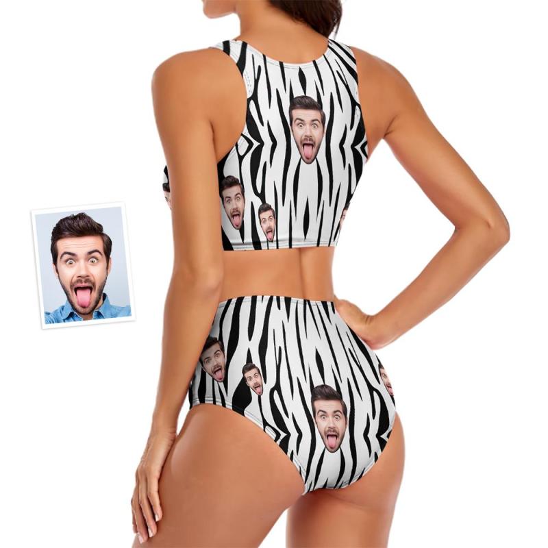 Custom Face Damen Zebra Streifen Sexy Zweiteiliger Badeanzug