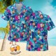 Dieses Hawaiihemd verfügt über einen Aufdruck, einen Knopfverschluss und kurze Ärmel.