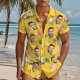Benutzerdefinierte Hawaiihemden Gesicht Tropische Pflanzen & Flamingos Aloha Shirt Für Ihn - Gelb