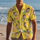 Startseite / Benutzerdefinierte Hawaiihemden Gesicht Tropische Pflanzen & Flamingos Aloha Shirt Für Ihn - Gelb