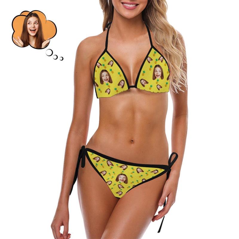 Benutzerdefinierte Frauen Gesicht Foto Bikini Sexy Anzug - Pineapple
