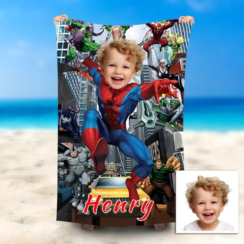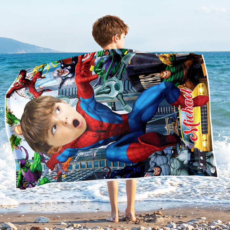 Startseite / Benutzerdefiniertes Foto-strandtuch, Running Spider-man-schwimm-strandtuch, Schnell Trocknendes Bade-strandtuch