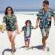 Startseite / Benutzerdefinierte Foto Hawaii-Hemd Eltern-Kind trägt personalisierte Gesicht Hawaii-Hemd Geschenk Flamingo Flower