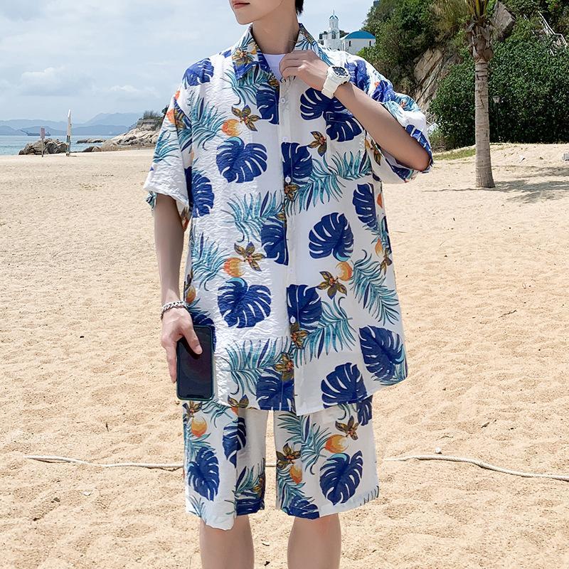 Startseite / Hawaii Hemden Drucken Tropische Blätter auf weißem Hintergrund Aloha Strand Hemden für Männer