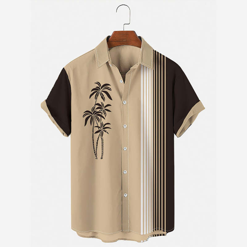 Startseite / Herren Vintage Hawaii Hemden Casual Palm Tree Print Gestreift Grün Hawaii Hemden für Männer