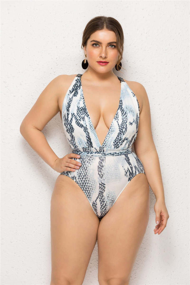 Startseite / Bedruckter sexy Badeanzug Schlangendruck plus Größe ein Stück Badeanzug