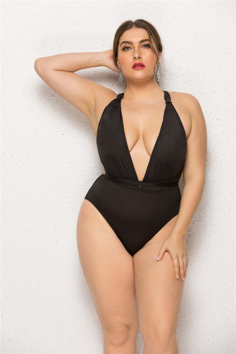 Startseite / Sexy Backless Cross-Tie One Piece Deep V Plus Size One Piece Badeanzug