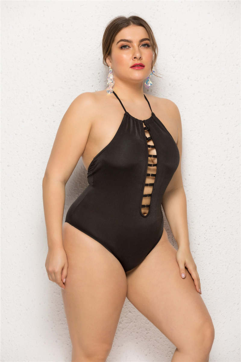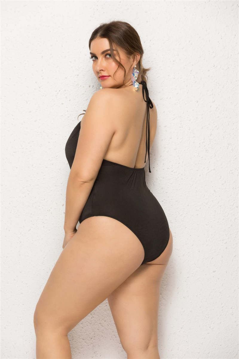 Startseite / Sling Bikini Solid Color Rückenfrei Sexy Ausschnitt Hollow Out Großer Badeanzug