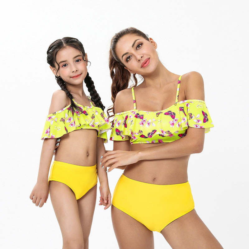 Startseite / Sling Ruffled Butterfly Split Eltern-Kind-Badeanzug