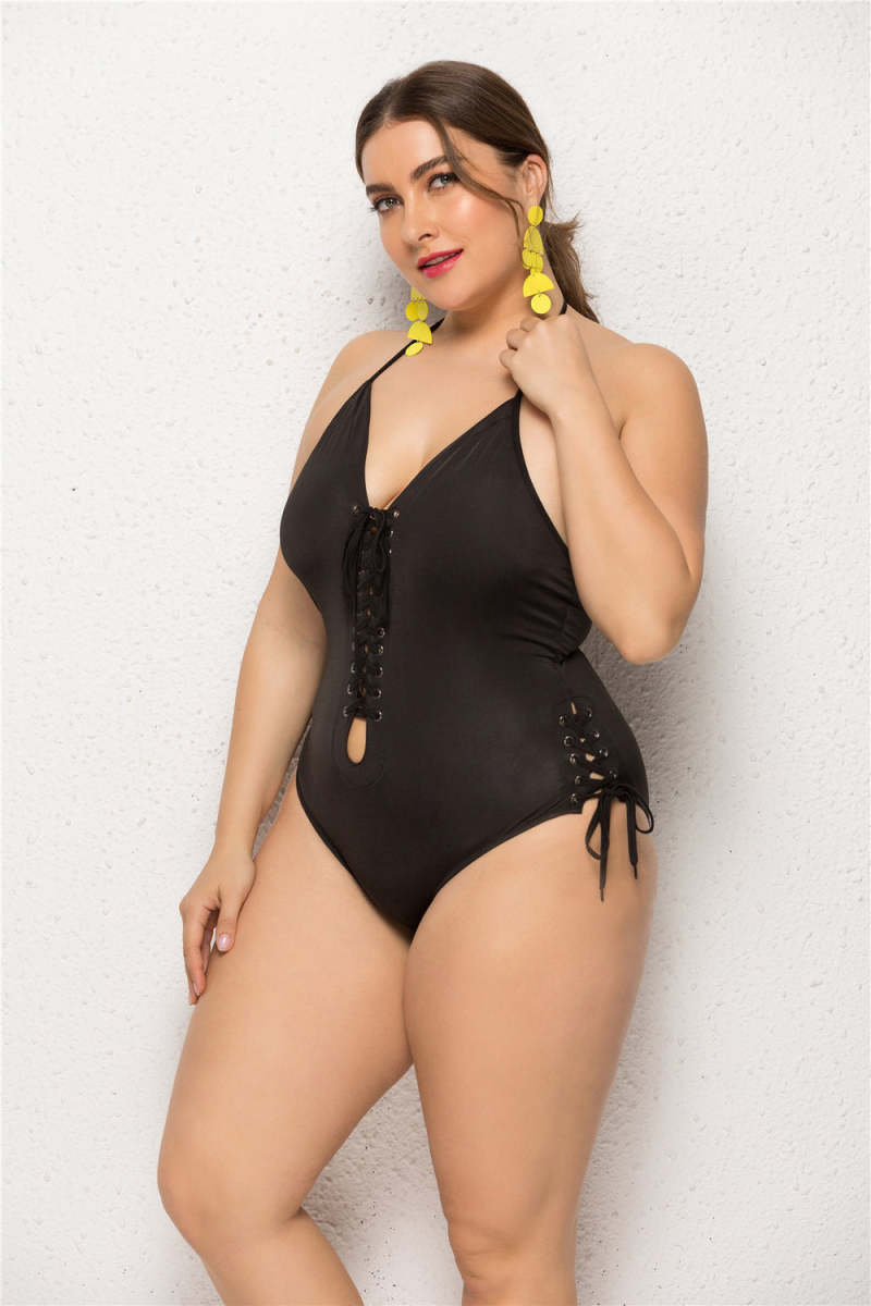 Startseite / Solide Farbe Große Größe Triangle Bikini Sexy Backless Strap One Piece Swimsuit