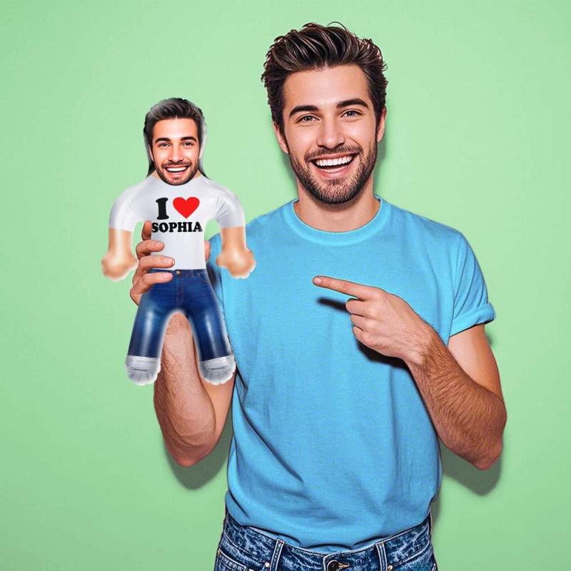 Gestalte deine ganz persönlichen aufblasbaren Puppen. Lade ein Foto von dir, einem Freund oder einer geliebten Person hoch und verwandle sie in eine einzigartige aufblasbare Puppe zum Kuscheln, Werfen und Herumwerfen.Stell dir die Reaktionen deiner Freunde und Gäste vor, wenn sie dieses urkomische Meisterwerk erleben. Ob beim Entspannen am Pool, beim Posieren für lustige Fotos oder einfach nur als Blickfang – unsere aufblasbare Puppe ist der ultimative Eisbrecher und Gesprächsstarter.