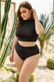 Zweiteiliger High Neck Zip High Waist Black Split Large Badeanzug