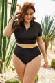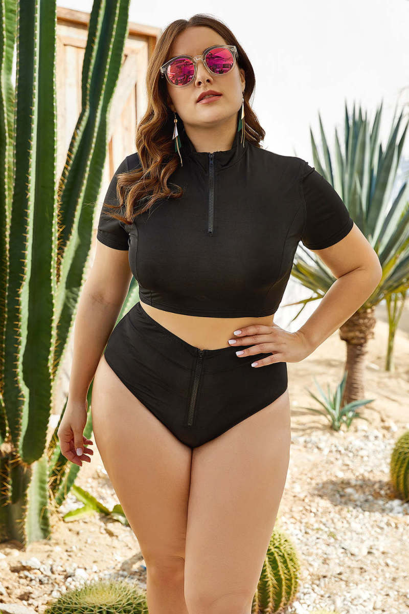 Startseite / Zweiteiliger High Neck Zip High Waist Black Split Large Badeanzug