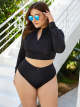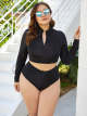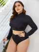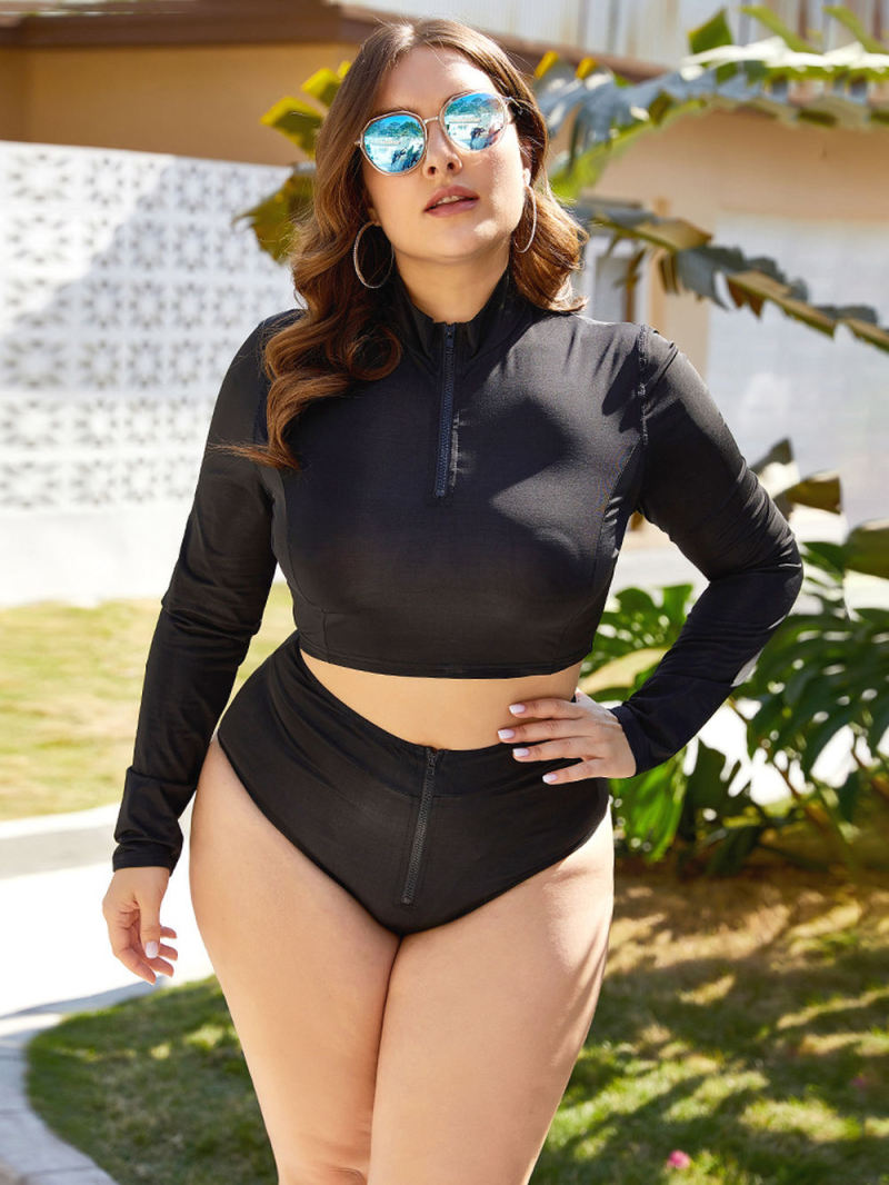 Startseite / Zweiteiliger langärmeliger Rollkragenpullover mit Reißverschluss Großes Schwarzes Sexy Split Badeanzug